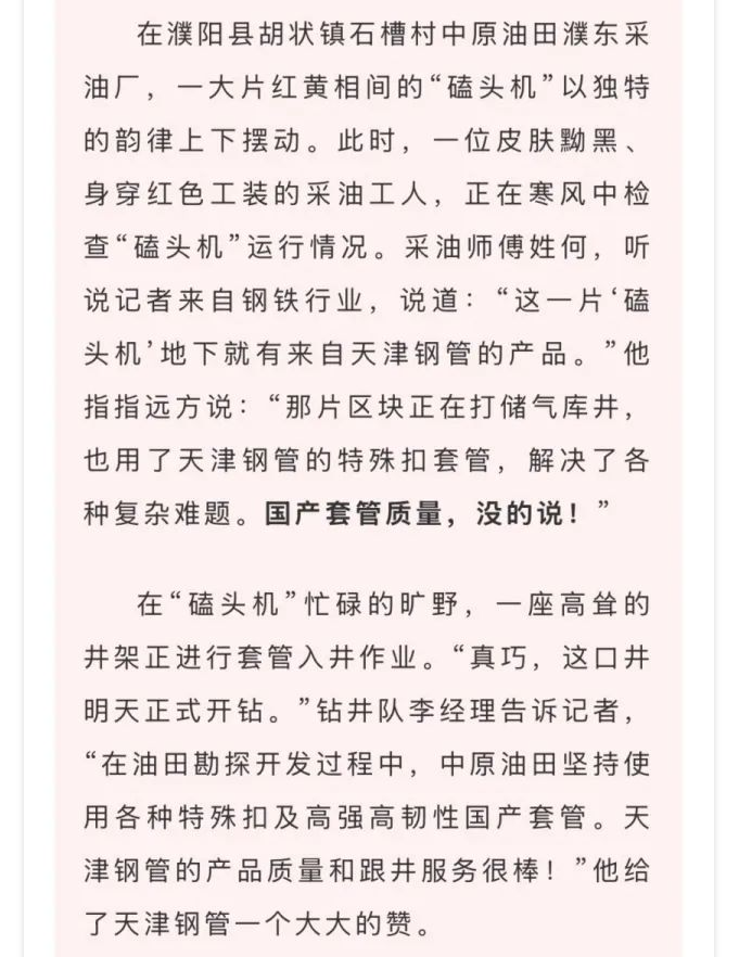 媒体聚焦 | 冶金文苑:新春首单!跟着国产钢管挺进中原油田