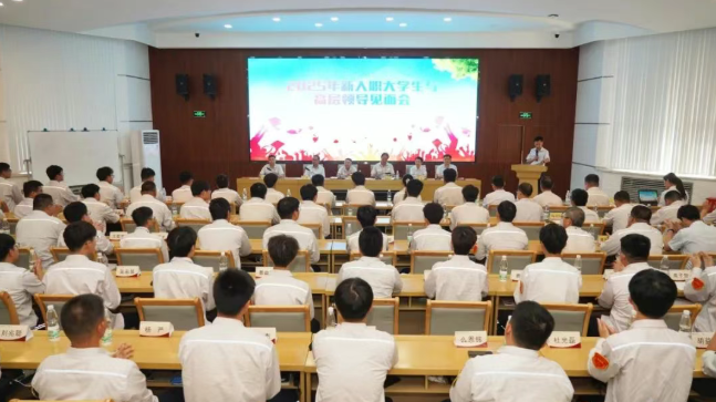 8月5日,天津钢管公司2025年新入职员工与高层领导见面会在培训中心学术报告厅举行。公司党委书记、总经理张亚彬,常务副总经理温德松,纪委书记王勇,副总经理孙宇、王国富,总会计师彭强出席见面会,党委组织部、人力资源部部长、培训中心常务副主任曹鹏飞主持会议,公司办公室、党群工作部、安全管理部、炼铁厂、炼钢厂、轧管事业部、管加工事业部等负责人和62名新入职员工参会。